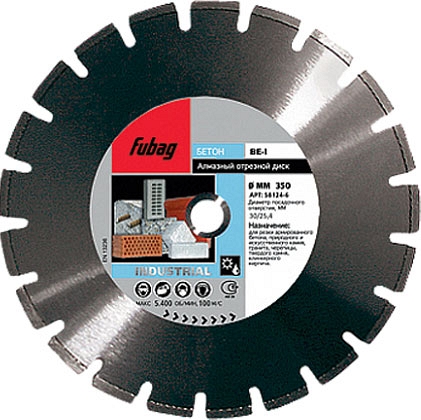Алмазный диск по бетону, железобетону, камню Fubag BE-I (Фубаг БЕ-И) предназначен для резки всех видов бетона, железобетона, промывного бетона, строительного камня с применением камнерезных станков, плиткорезов электрических, бензорезов, электрических резчиков, швонарезчиков, стенорезных машин.