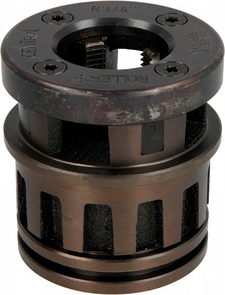 Быстросменная резьбонарезная головка Roller Central R 3/4" (Роллер Централ Р 3/4") предназначена для нарезки правой трубной конической резьбы R, согласно ISO 7-1, EN 10226 (DIN 2999, BSPT) на стальных трубах Ø 3/4" с применением ручных и электрических резьбонарезных трубных клуппов Централ, Кинг 1 1/4", Кинг 2".