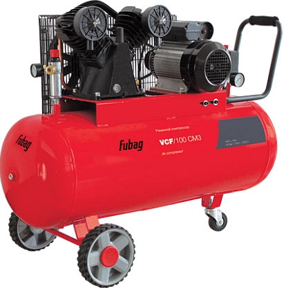 Двухцилиндровый одноступенчатый масляный компрессор Fubag VCF/100 CM3 (Фубаг ВЦФ/100 ЦМ3) предназначен для обеспечения сжатым воздухом пневмоинструмента при выполнении строительных и монтажных работ, в мастерских либо на производстве.