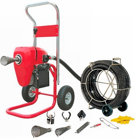 - Многофункциональное устройство повышенной надежности, привод и бухта для спирали оснащены колесами, можно выполнять сложную работу по прочистке труб в одиночку