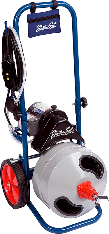 Прочистная машина для канализационных труб Electric Eel Z5K-1/2IC50 (Электрик Ил З5К-1/2ИЦ50) – электрический прочистной аппарат барабанного типа для прочистки канализации Ø 32 – 75 мм (1 1/4" – 3") на максимальную длину до 15 м. Применяется при пробивке засоров и очистке труб от жировых, иловых, твердых отложений, корней, тряпок, бутылок и других видов засоров. Поставляется на удобной тележке с большими колесами для удобства маневрирования и транспортировки.