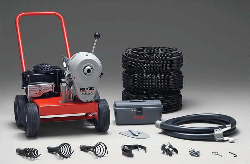 Бензиновая прочистная машина секционного типа Ridgid K-1500G (Риджид К-1500Г) предназначена для прочистки сточных и канализационных труб Ø 50 – 250 мм (2" – 10") на длину до 92 м.