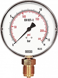 | 115045 | Манометр с точной шкалой, на 1,6 МПа / 16 бар / 232 фкд, для считывания изменений давления от 0,01 МПа / 0,1 бар / 1,45 фкд согласно DIN 1988 |