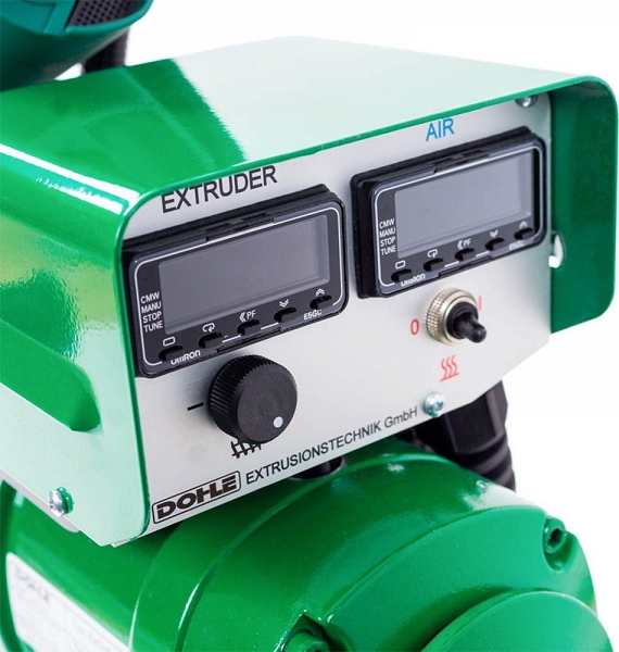 Модель ExOn 6 – один из самых производительных ручных сварочных экструдеров от производителя Dohle (Германия), предназначен для сварки крупногабаритных изделий с толщиной стенки до 50 мм. Особенностью является то, что в качестве присадочного материала используется не сварочный пруток, а гранулят, который засыпается в колбу, устанавливаемую на экструдер. Благодаря раздельной системе нагрева, позволяющей отдельно регулировать и контролировать на дисплеях контроллеров температуру расплава в экструзионной камере и температуру воздуха для прогрева свариваемого материала, отлично справляется с работой как в цеху, так и на открытом воздухе при неблагоприятных погодных условиях.
