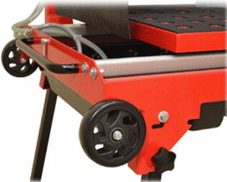 - Удобные съемные рукояти, складывающиеся ножки (закрепляются под станком специальными зажимами), транспортировочные колеса для удобства и облегчения транспортировки, перемещения и хранения, позволяют одному человеку перевезти станок на небольшие расстояния и погрузить в машину с низким бортом