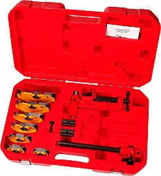 – Желтые стандартные сегменты: Ø труб 10 – 22 мм, толщина стенки труб 1 - 1,5 мм, угол изгиба 0° – 180°, малый радиус изгиба - Дополнительная принадлежность для крепления на верстаке: опорное основание, в которое устанавливается трубогиб, экономит место и позволяет работать в горизонтальном и вертикальном положении, хранится в чемодане для трубогиба