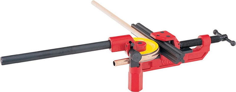 Трубогиб ручной со свободной направляющей и универсальными сегментами Virax 10-12-14-16-18-20-22 мм (Виракс 10-12-14-16-18-20-22 мм) – верстачный настольный рычажный трубогиб для гибки медных, алюминиевых, латунных, тонкостенных стальных и нержавеющих, изолированных труб Ø 10, 12, 14, 16, 18, 20, 22 мм, толщиной стенки 0,8 – 1,5 мм, на угол до 180°, с креплением на верстаке или в тисках.