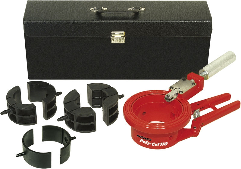 Труборез для медных и нержавеющих труб Roller Poly-Cut 110 Cu-Inox (Роллер Поли-Кат 110 Ку-Инокс) – мощный надежный инструмент из металла для отрезки под 90° тонкостенных водосточных и сливных труб из меди, нержавеющей стали, оцинковки, сплавов, а также сварных труб Ø 50 – 110 мм, толщиной стенки до 4 мм.