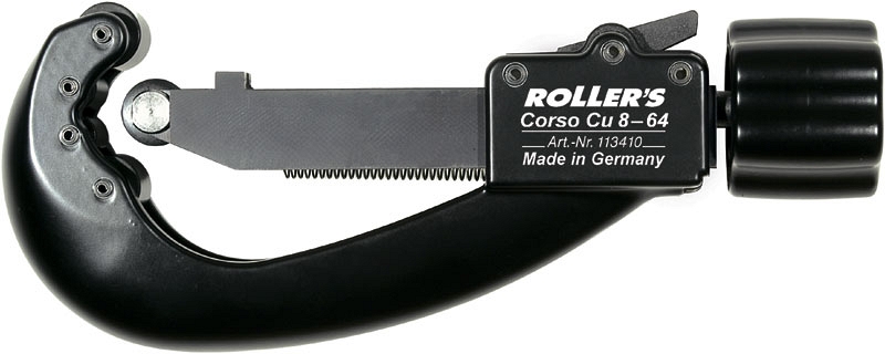 Труборез для медных труб Roller Corso Cu 8-64 (Роллер Корсо Ку 8-64) с быстрым переставлением предназначен для резки медных труб Ø 8 – 64 мм (3/8" – 2 1/2"), толщиной стенки до 3 мм.