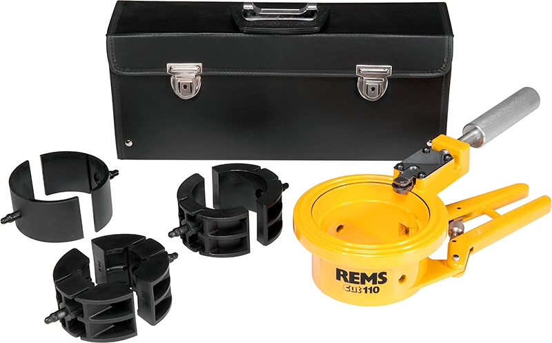 - Rems Cut 110 Cu-Inox Set 50+75+110. Труборезный станок для резки сварных сточных / спускных труб из меди, сплава титана и цинка, нержавеющей стали (EN 1124), Ø 50, 75, 110 мм. Быстросменное оборудование Ø 110 мм с зажимным устройством. Набор инструмента Cu-Inox с режущим диском Cu-Inox 3-120, s 4. В прочном чемодане.