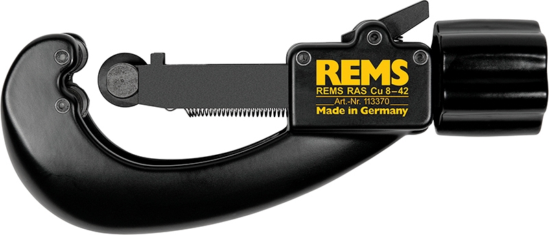Труборез ручной для медных труб Rems Ras Cu 8-42 (Ремс Рас Ку 8-42) с телескопическим шпинделем и возможностью быстрой перестановки – прочный высококачественный инструмент для резки медных труб Ø 8 – 42 мм (3/8" – 1 5/8"), толщиной стенки до 3 мм.
