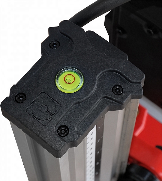 - Алюминиевая станина (стойка) с основанием и электродвигатель, закрепленный на рабочей каретке с двухскоростным редуктором, которая перемещается по стойке с помощью стальной зубчатой рейки